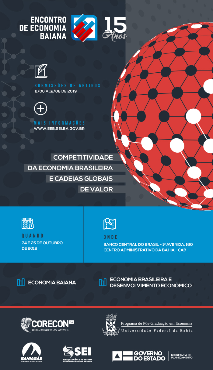 O Encontro de Economia Baiana é uma realização da Superintendência de Estudos Econômicos e Sociais da Bahia (SEI), pelo Programa de Pós-Graduação em Economia da Universidade Federal da Bahia (UFBA) e Conselho Regional de Economia da Bahia (CORECON-BA).