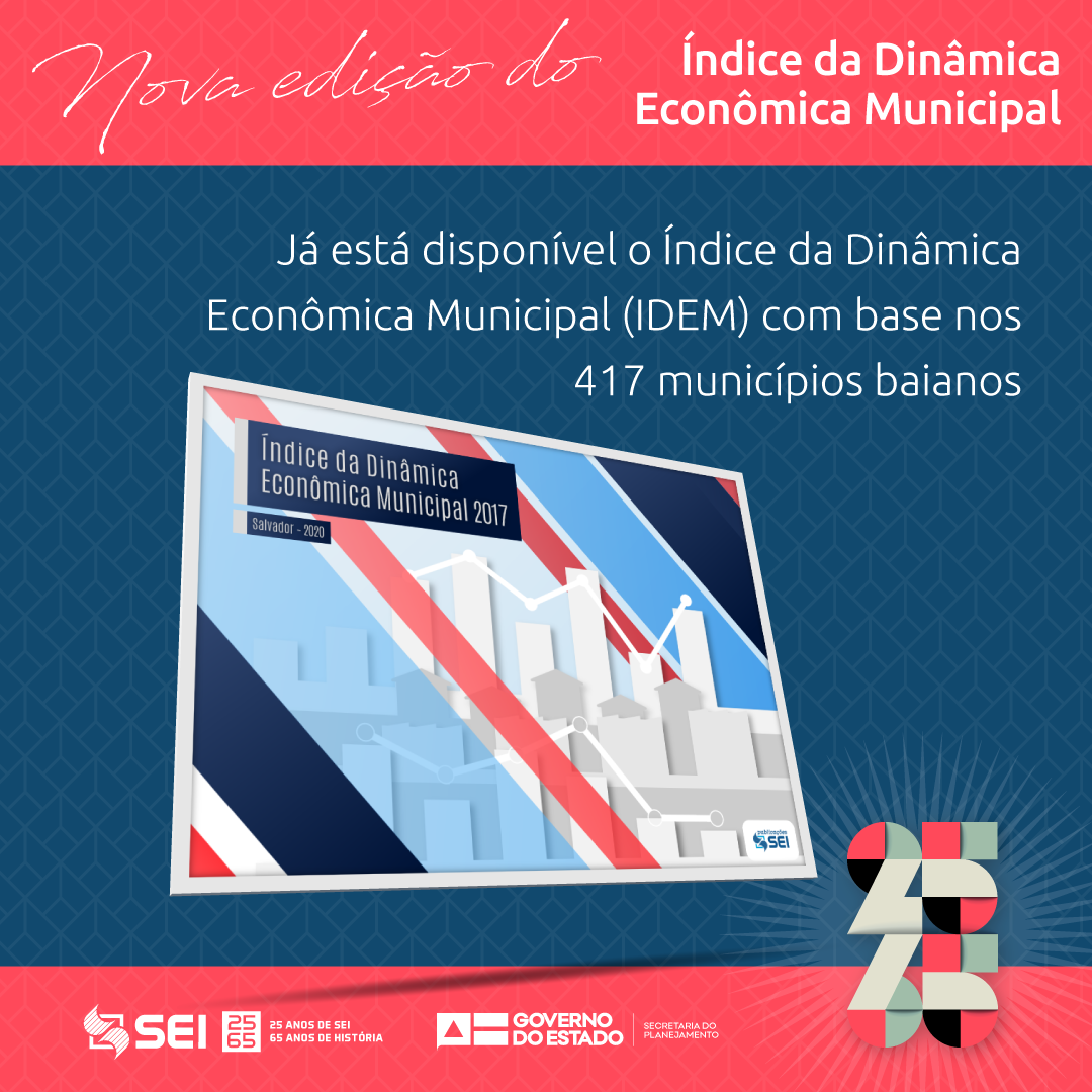 A Superintendência de Estudos Econômicos e Sociais da Bahia (SEI) divulga nesta terça-feira (23) o IDEM – Índice da dinâmica econômica municipal – com o objetivo avaliar o desempenho da economia dos municípios baianos, a partir da estrutura produtiva instalada.
