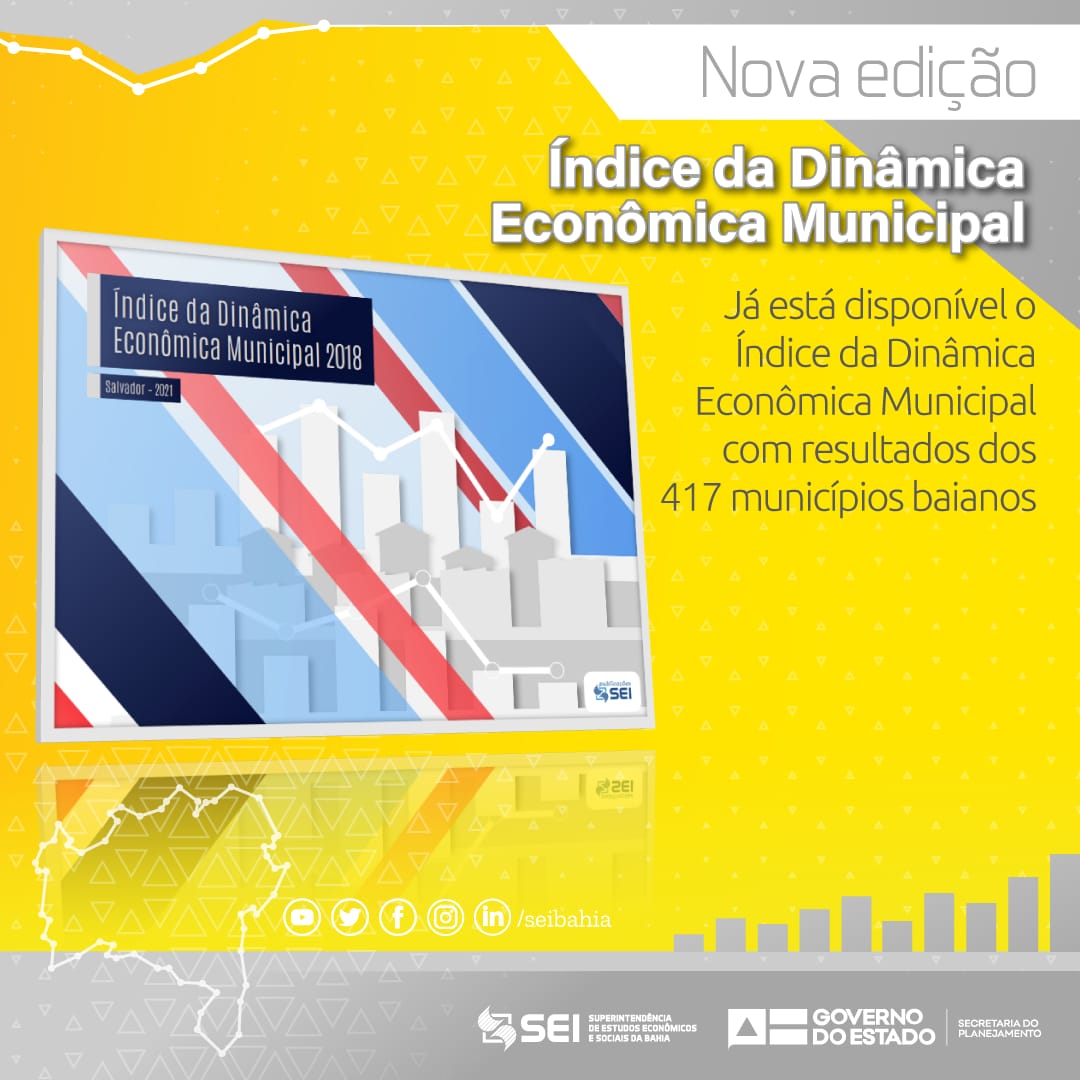 A Superintendência de Estudos Econômicos e Sociais da Bahia (SEI) divulga nesta quinta-feira (15) o Índice da Dinâmica Econômica Municipal (IDEM), referente ao ano de 2018, com o objetivo avaliar o desempenho da economia dos municípios baianos, a partir da estrutura produtiva instalada.