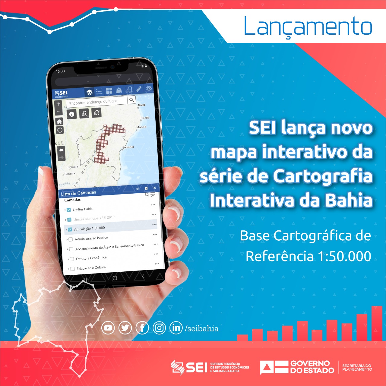 A Superintendência de Estudos Econômicos e Sociais da Bahia (SEI) está lançando um novo mapa interativo de sua série, para ampliar o acesso ao acervo cartográfico estadual. A série Cartografia Interativa da Bahia publica aplicativos de internet para consulta das bases cartográficas de referência e temáticas do seu acervo.
