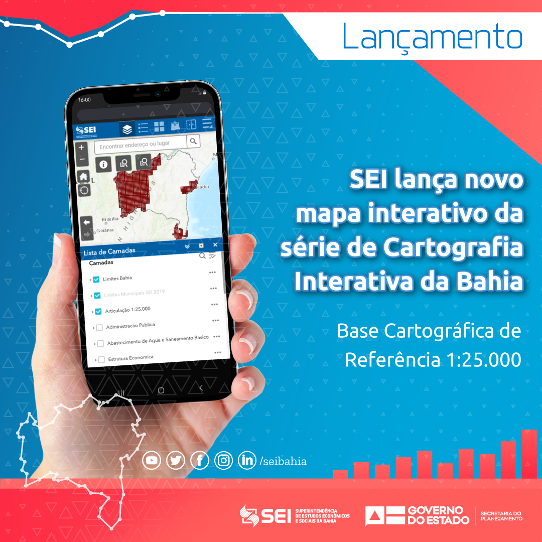 A Superintendência de Estudos Econômicos e Sociais da Bahia (SEI) está lançando um novo mapa interativo de sua série, para ampliar o acesso ao acervo cartográfico estadual. A série Cartografia Interativa da Bahia publica aplicativos de internet para consulta das bases cartográficas de referência e temáticas do seu acervo.