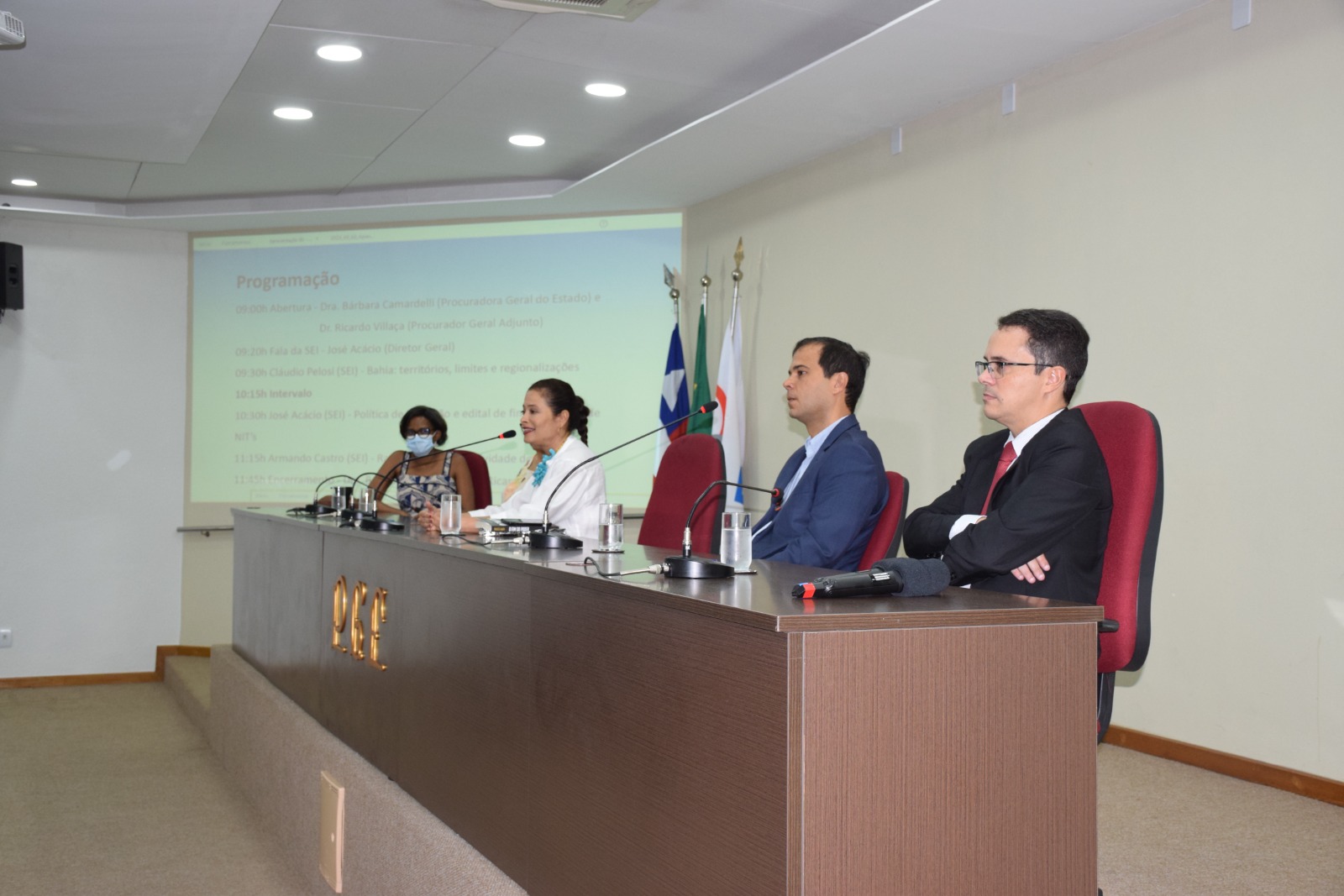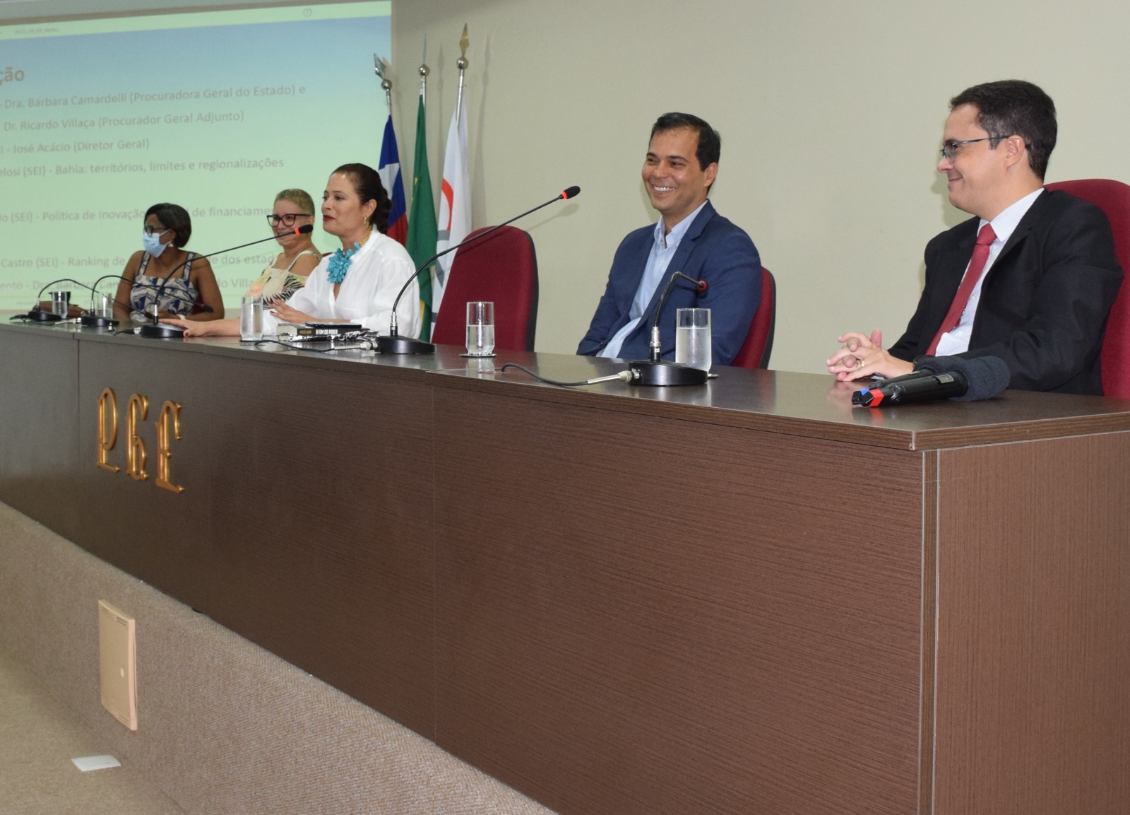 O evento aconteceu no auditório da PGE-BA e teve mesa de abertura com a participação da procuradora geral do Estado da Bahia, Bárbara Camardelli, o diretor geral da SEI, José Acácio Ferreira, o procurador geral adjunto para assuntos administrativos, Ricardo José Villaça, a procuradora chefe do Centro de Estudos e Aperfeiçoamento, Renata Fabiana Silva, e a chefe de gabinete da Secretaria de Ciência, Tecnologia e Inovação (Secti), Mara Souza.