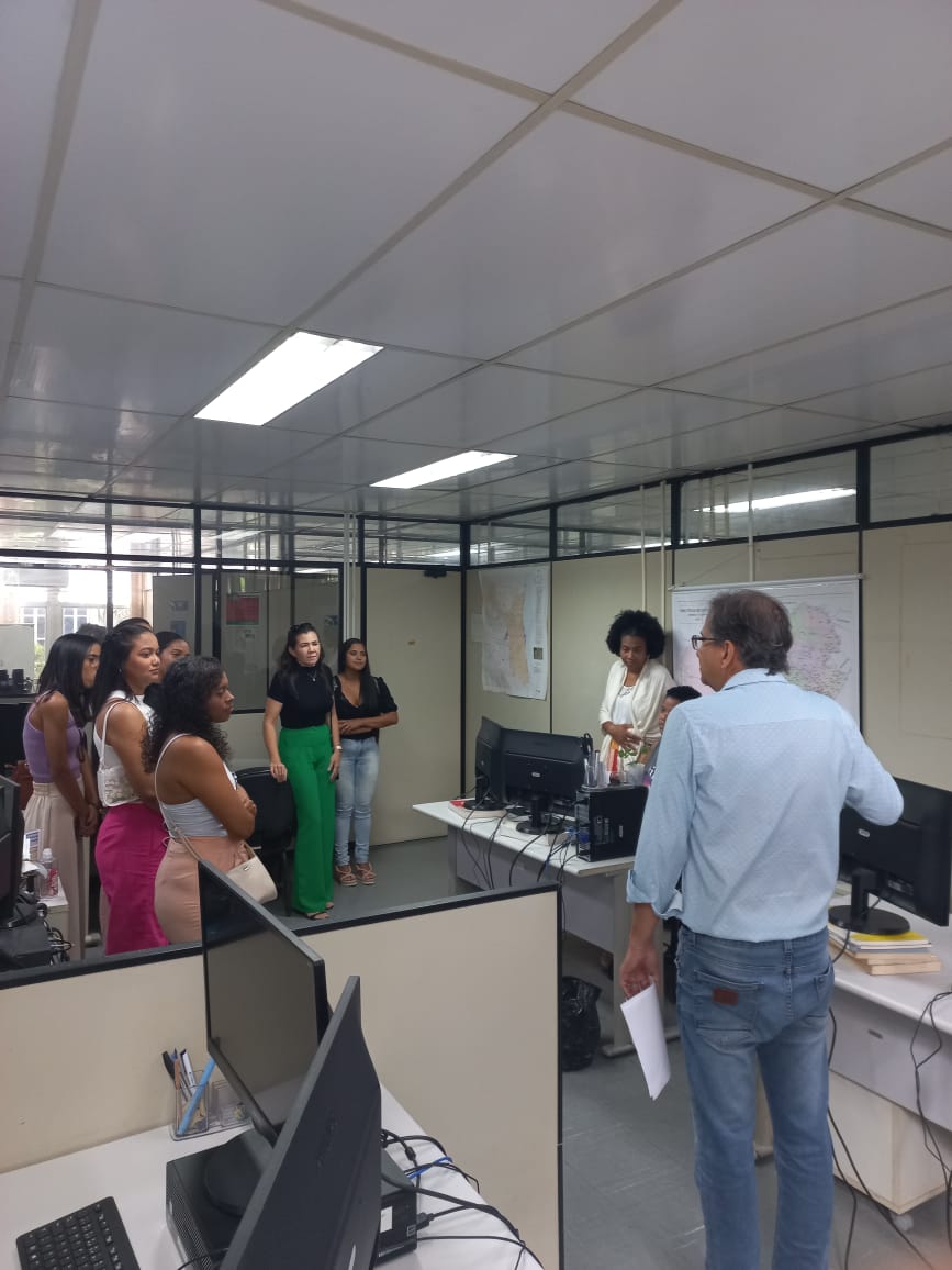 Na manhã desta sexta-feira (31/03), a SEI recebeu 18 estudantes e a professora do curso Engenharia de Agrimensura e Cartográfica da Universidade Federal de Alagoas (UFAL) para visita técnica e palestra de apresentação do portal SEIGEO.