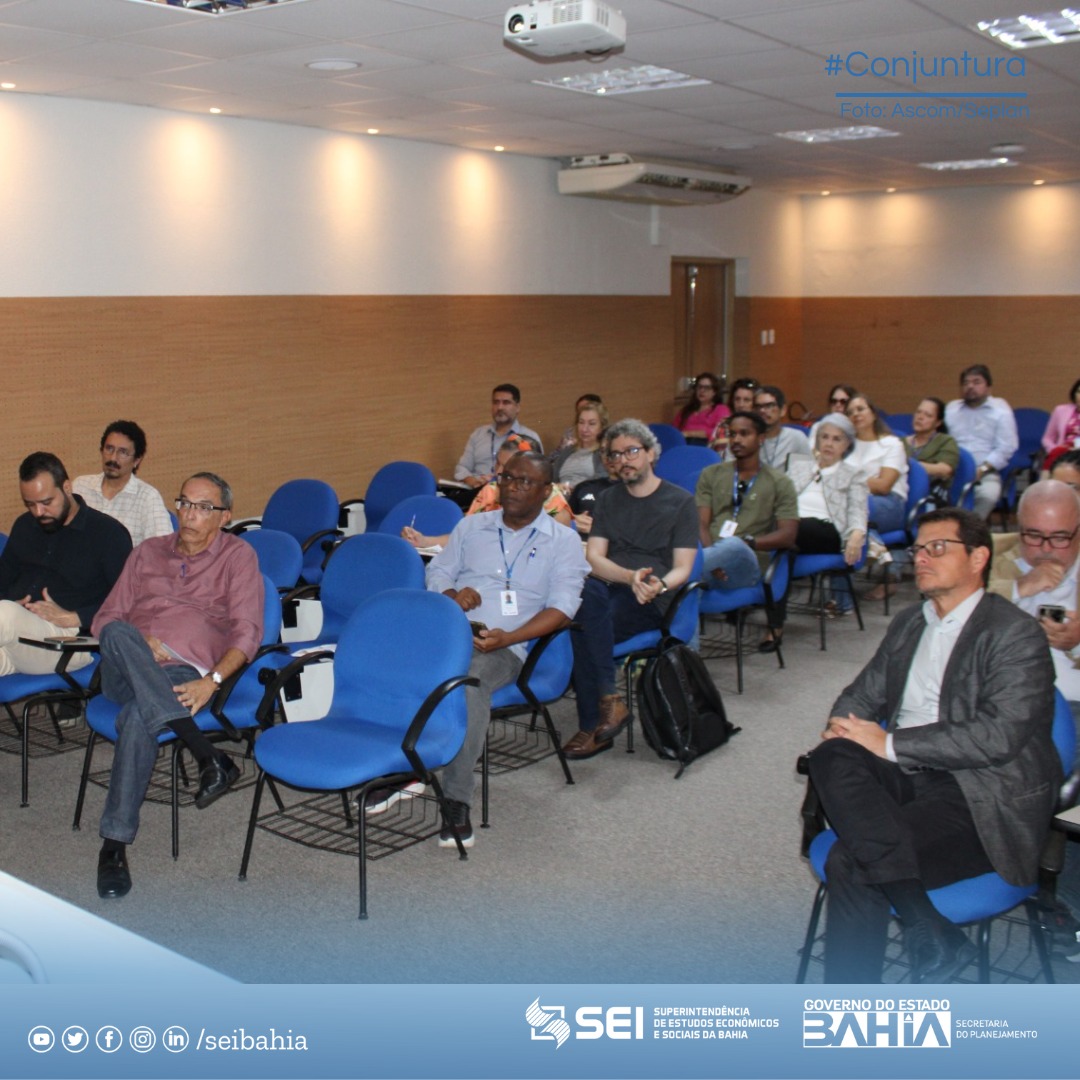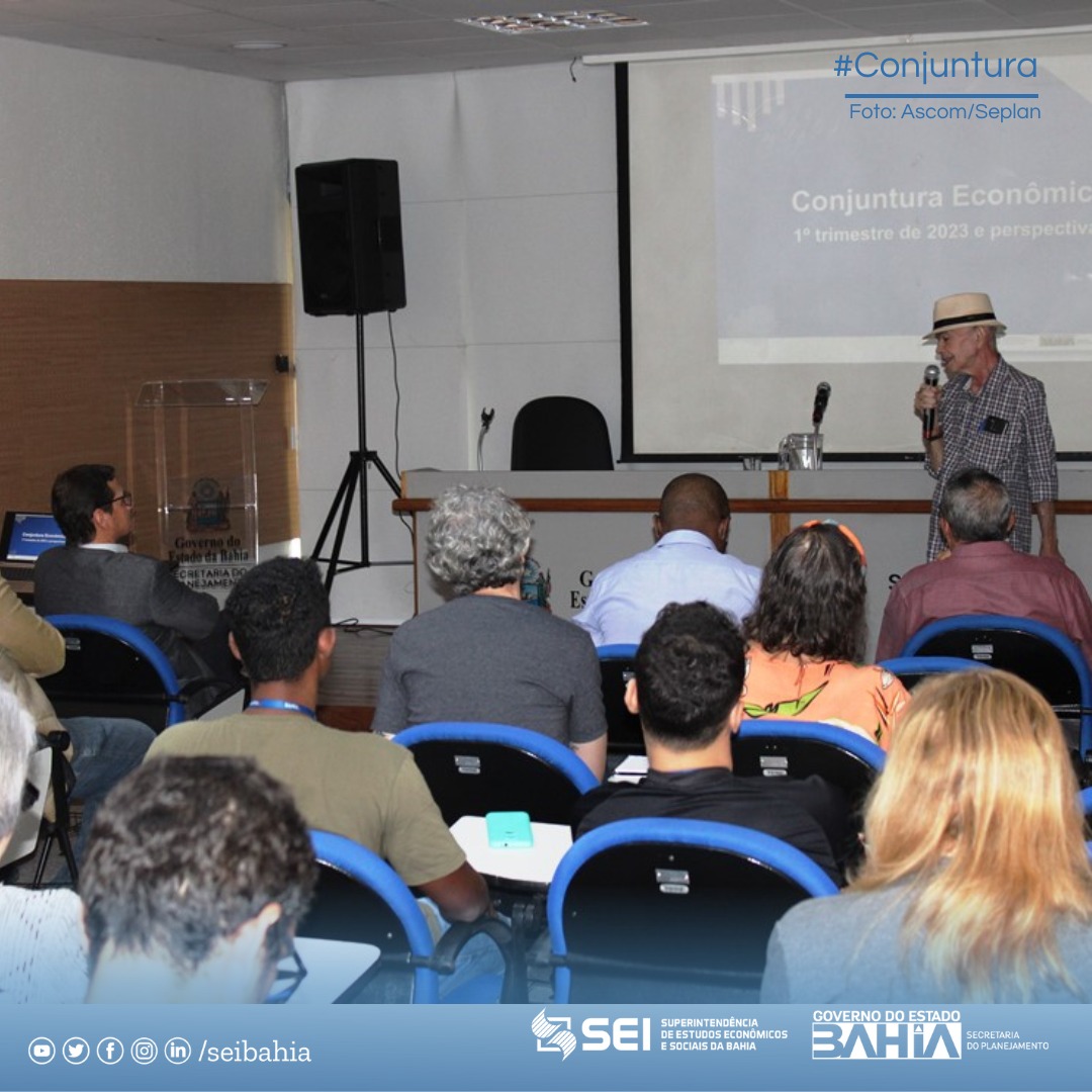 Os resultados da economia baiana no primeiro trimestre de 2023, além de análises conjunturais dos cenários internacional e nacional, foram tema do encontro realizado pela Superintendência de Estudos Econômicos e Sociais (SEI), que reuniu técnicos, gestores estaduais e especialistas, na quarta-feira (28), no auditório da Secretaria de Planejamento do Estado da Bahia (Seplan), no Centro Administrativo da Bahia (CAB).