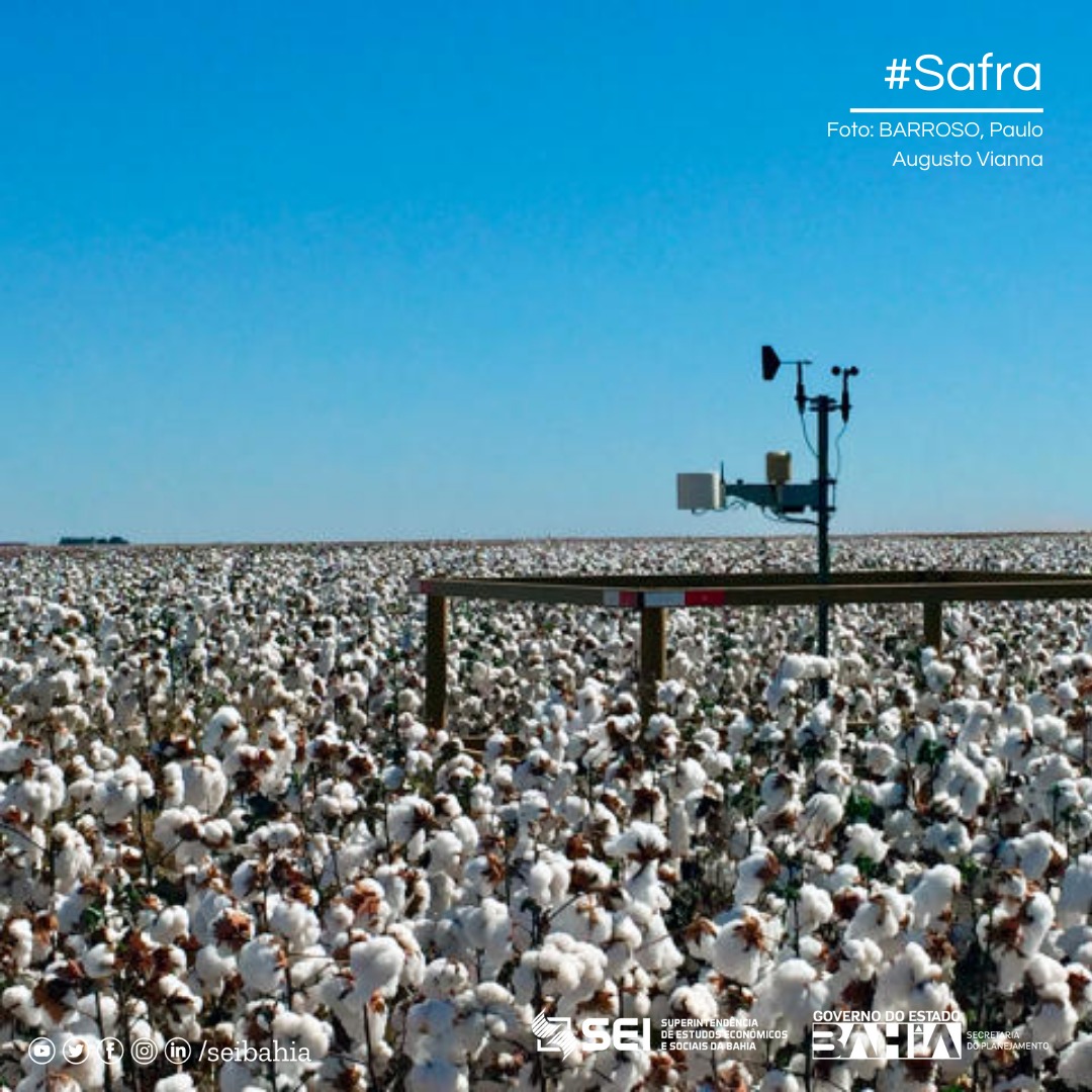 A produção de algodão está estimada em 1,4 milhão de toneladas, plantado em 313 mil hectares, o que representa um crescimento de 10,9% em relação ao ciclo 2021/2022.