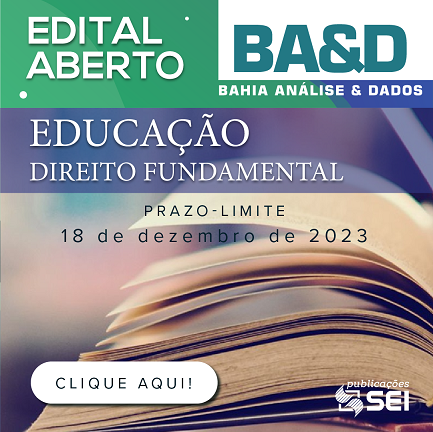 O edital de chamada de artigos para a revista Bahia Análise & Dados (BA&D) sobre o tema Educação: direito fundamental tem data-limite para submissão até o dia 18 de dezembro de 2023. A revista é uma publicação semestral da Superintendência de Estudos Econômicos e Sociais da Bahia (SEI), órgão vinculado à Secretaria do Planejamento, e reúne artigos científicos, tecnológicos e resenhas críticas.