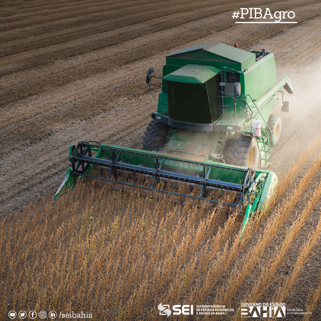 O PIB do agronegócio baiano, calculado e divulgado pela Superintendência de Estudos Econômicos e Sociais da Bahia (SEI), totalizou R$ 88,66 bilhões em 2023 e fechou o ano com crescimento de 4,2% e participação de 21,1% na economia baiana. No último trimestre de 2023, verificou-se crescimento de 3,0%.
