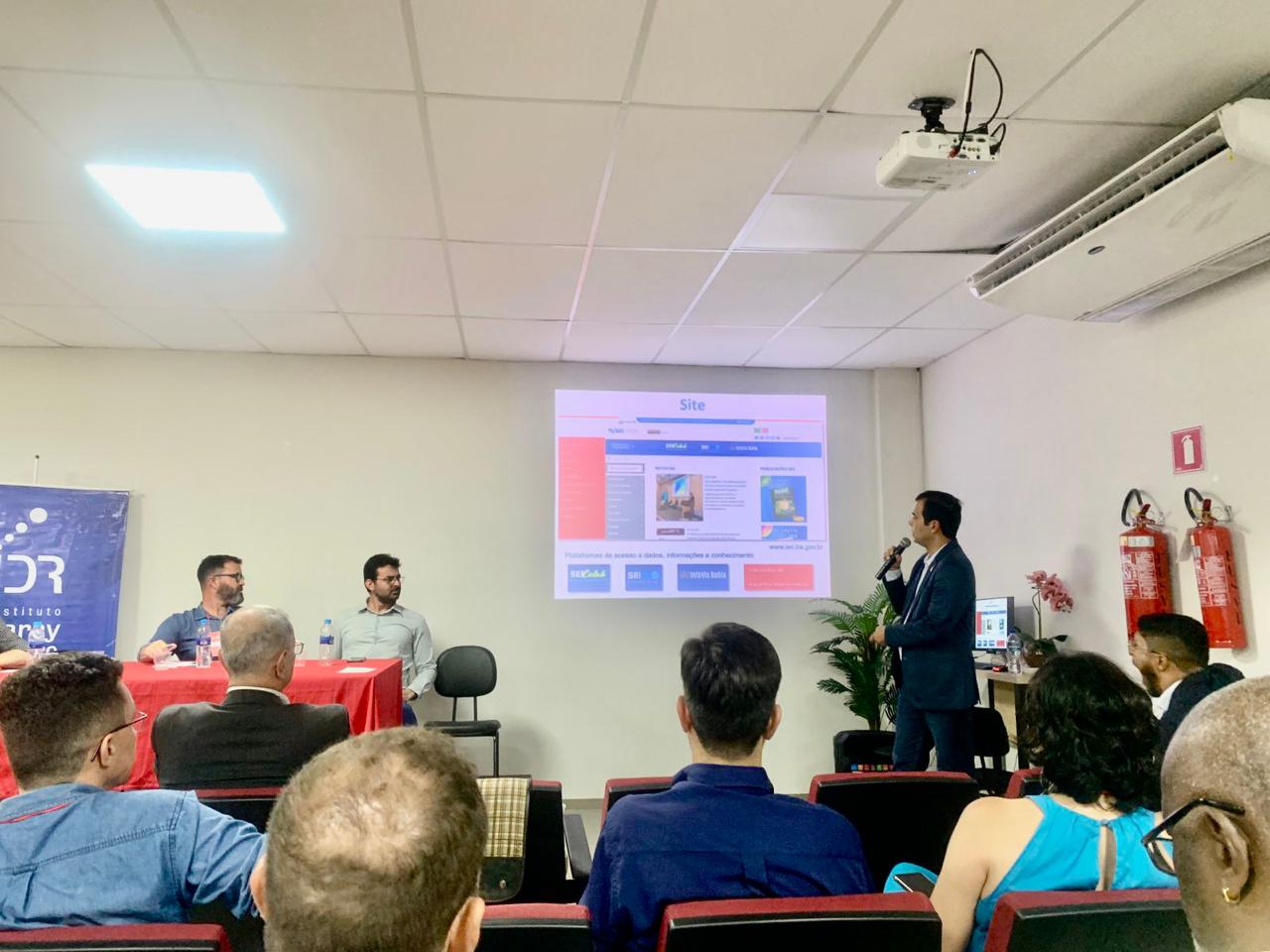 O diretor-geral da SEI, José Acácio Ferreira, participou, na tarde desta terça-feira (26), da mesa-redonda 4: Sistemas, métodos e ferramentas de gestão e difusão da informação, quando apresentou as estratégias da SEI para alavancar a gestão e disseminação da informação. Na oportunidade, ele destacou as plataformas digitais de acesso às informações, disponíveis no site da SEI, a Biblioteca Rômulo Almeida, a linha editorial e os grandes eventos do calendário anual da SEI.