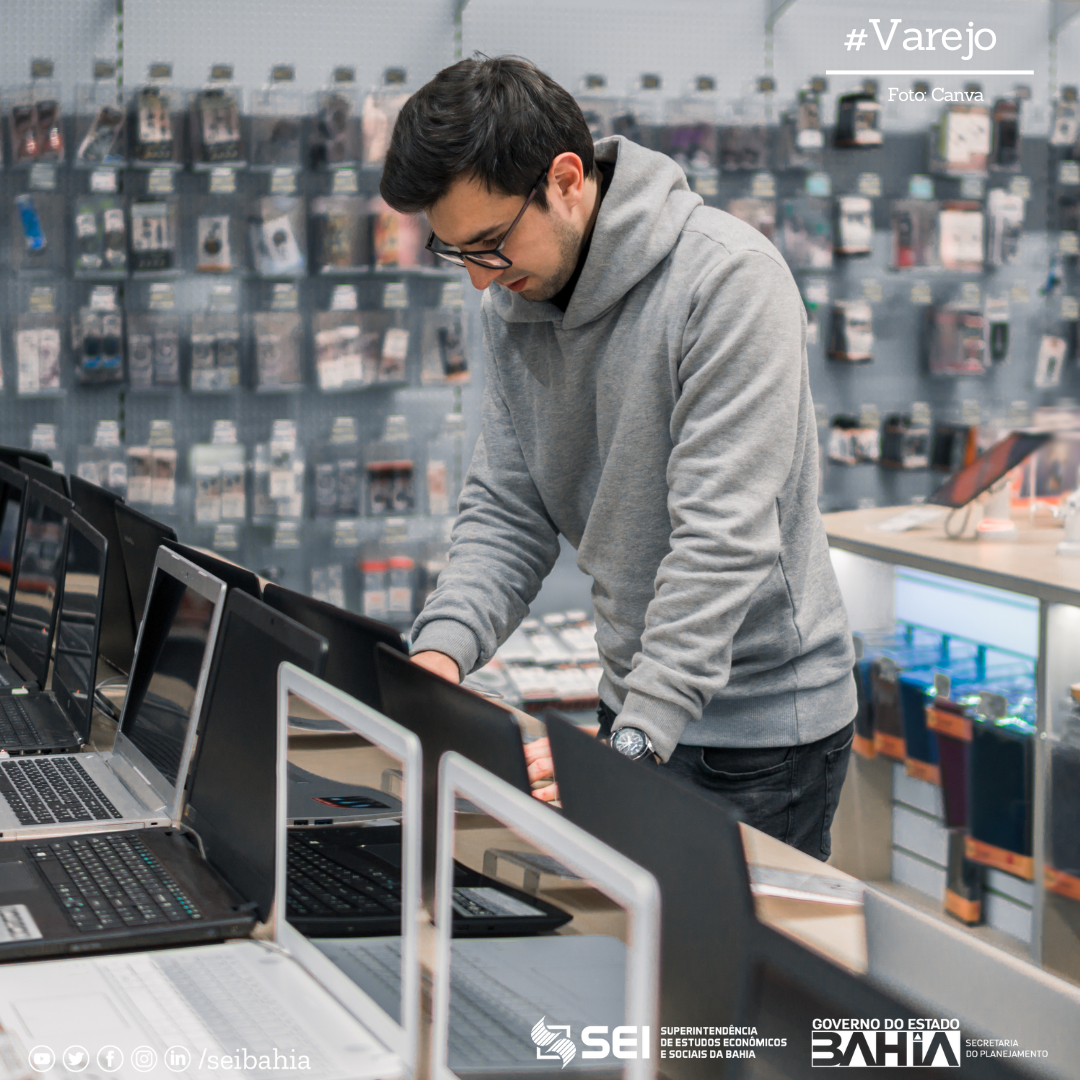 O comércio varejista baiano retraiu suas vendas em 1,4% em fevereiro de 2024 frente ao mês imediatamente anterior, na série livre de influências sazonais. Já no nacional houve avanço de 1,0%, considerando a mesma base de comparação. Com relação a igual mês do ano anterior, a Bahia apresentou a taxa expressiva de 12,0%, sétimo melhor resultado em termo de magnitude da taxa dentre os estados, e 16º mês consecutivo a registrar comportamento positivo. No Brasil, na mesma base de comparação, as vendas expandiram em 8,2%. No bimestre, as variações também foram positivas em 11,9% e 6,1%, respectivamente no âmbito estadual e federal. Esses dados foram apurados pela Pesquisa Mensal de Comércio (PMC) do Instituto Brasileiro de Geografia e Estatística (IBGE) – realizada em âmbito nacional – e analisados pela Superintendência de Estudos Econômicos e Sociais da Bahia (SEI), autarquia vinculada à Secretaria do Planejamento.