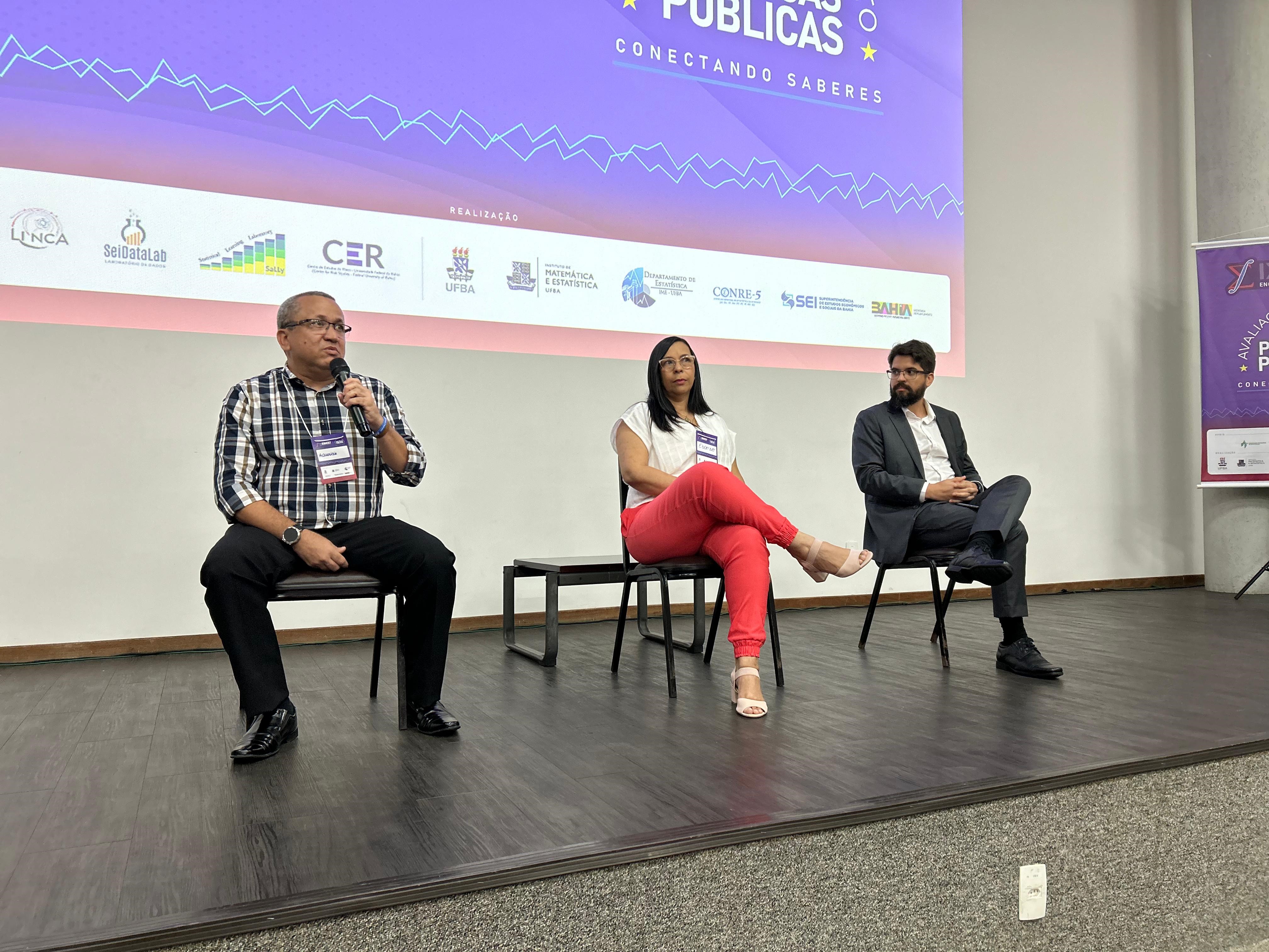 A mesa redonda "Desafios e Perspectivas da Avaliação de Políticas Públicas sob o Olhar de uma Análise Causal" contou com a participação da doutora Maria Yury Ichihara, médica e pesquisadora do Cidacs; do matemático Marcelo Taddeo, doutor em Estatística pela USP e professor do Departamento de Estatística da UFBA; e do economista Vinícius Mendes.