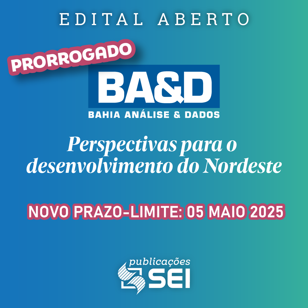 A BA&D é uma publicação semestral da Superintendência de Estudos Econômicos e Sociais da Bahia (SEI). O edital com as regras para participar da seleção está disponível no site da SEI.