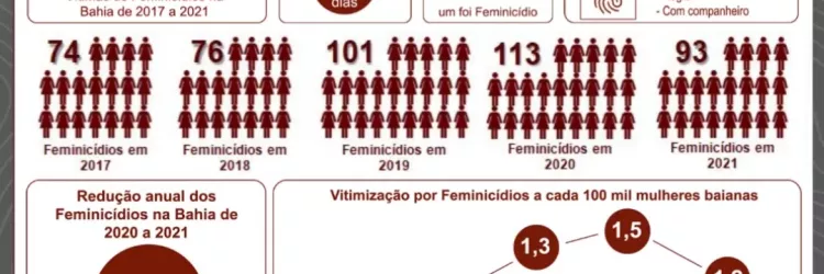 Feminicídios na Bahia caíram aproximadamente 18,0% em 2021