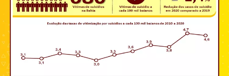 De cada 10 suicídios que ocorreram na Bahia em 2020, 8 vítimas eram do sexo masculino