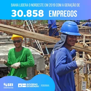Bahia liderou o Nordeste em 2019 com a geração de 30.858 empregos