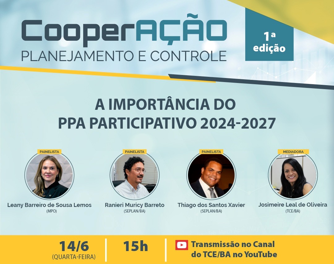 A importância do Plano Plurianual (PPA) para a atividade de planejamento no Brasil foi tema da primeira edição do evento CooperAção – Planejamento e Controle, neste ano de 2023. A iniciativa, que é fruto de acordo de cooperação técnica firmado por meio da Universidade Corporativa do Servidor (UCS/Seplan), o Tribunal de Contas do Estado da Bahia (TCE-Ba) e a Escola de Contas Conselheiro José Borba Pedreira Lapa (ECPL), tendo como objetivo formar, aperfeiçoar e especializar equipes técnicas, contou com a apresentação de técnicos da Secretaria de Planejamento da Bahia (Seplan) e do Ministério do Planejamento e Orçamento (MPO).