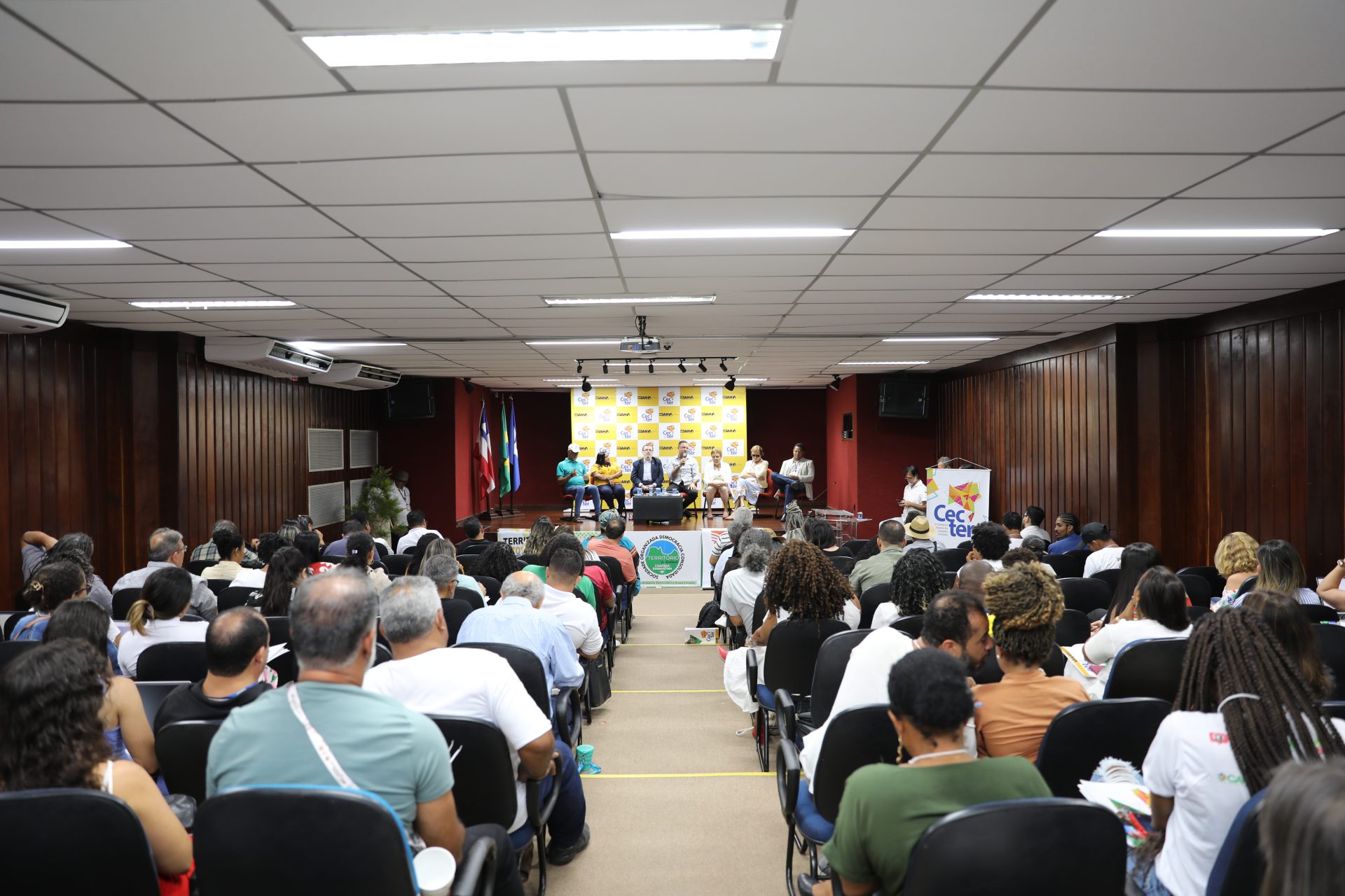 Representantes da sociedade civil e do poder público estadual, além de atores sociais de diversos segmentos, dos 27 Territórios de Identidade baianos, participaram da IV Conferência Estadual dos Colegiados Territoriais de Desenvolvimento Sustentável (Cecter), nesta sexta-feira (06), no Instituto Anísio Teixeira, em Salvador. Com o tema 10 anos da Lei 13.214/2014: projetando o futuro da Política de Desenvolvimento Territorial, o evento, que marca uma década da promulgação da legislação que estabelece as diretrizes da política territorial no estado, visa refletir sobre os avanços, desafios e perspectivas da política de desenvolvimento territorial.