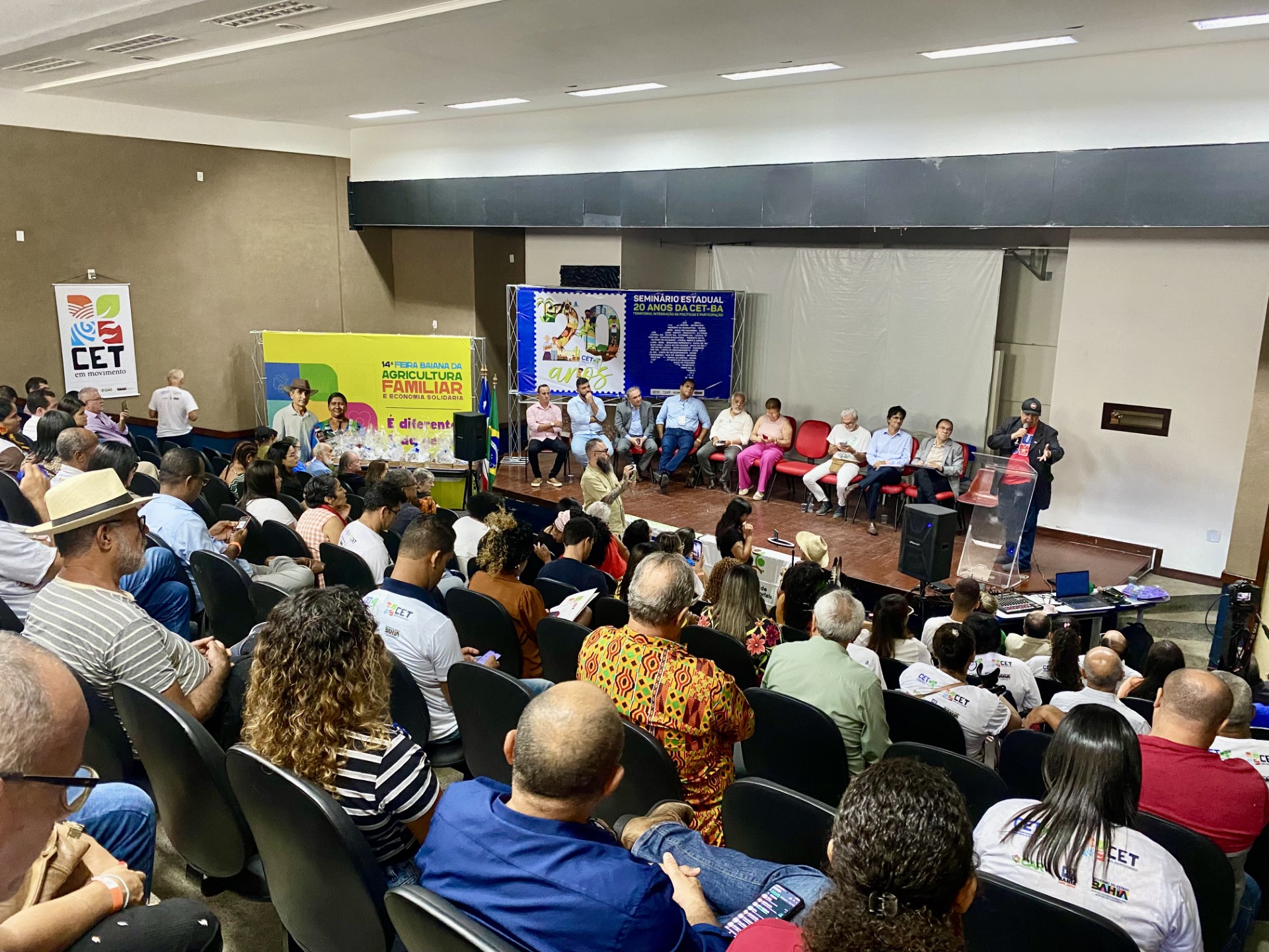 A trajetória dos 20 anos de atuação da Coordenação Estadual dos Territórios de Identidade da Bahia (CET-Ba) foi celebrada nesta quarta-feira(13), durante a programação da 14ª Feira Baiana da Agricultura Familiar e Economia Solidária, realizada no bairro do Costa Azul, em Salvador. A Secretaria Estadual do Planejamento esteve representada pelas presenças do superintendente de Planejamento Estratégico (SPE), Ranieri Barreto, e do coordenador executivo de Planejamento Territorial e Articulação para Consórcios Públicos (CEPT), Thiago Xavier, na mesa de abertura do Seminário Estadual: 20 anos da CET.