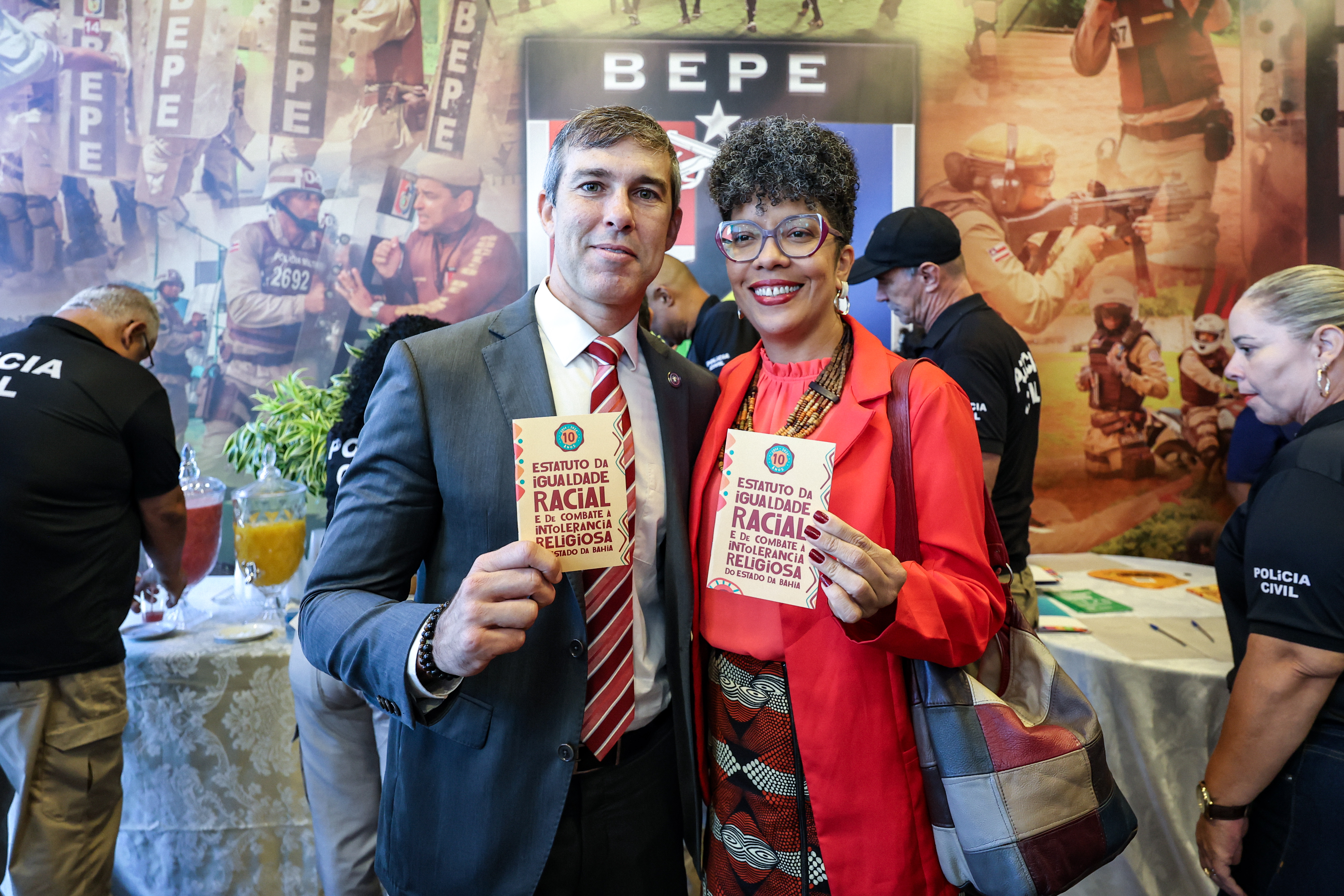 Policiais de outros municípios da Bahia também participaram à distância do encontro que contou também com a presença da Delegacia Especializada em Combate ao Racismo e à Intolerância Religiosa - DECRIN, pela primeira vez articulada com a SEPROMI e toda a Rede garantindo às diversas formas de existir, brincar e viver o carnaval baiano. " Neste carnaval estamos focadas(os) em disputar um evento cada vez mais digno, sem violências raciais, sem intolerâncias e promovendo a cultura de paz em Rede, contando com todas as forças de segurança pública para que a promoção da igualdade racial seja um horizonte para todas(os) nós", disse a Secretária da SEPROMI, Ângela Guimarães.