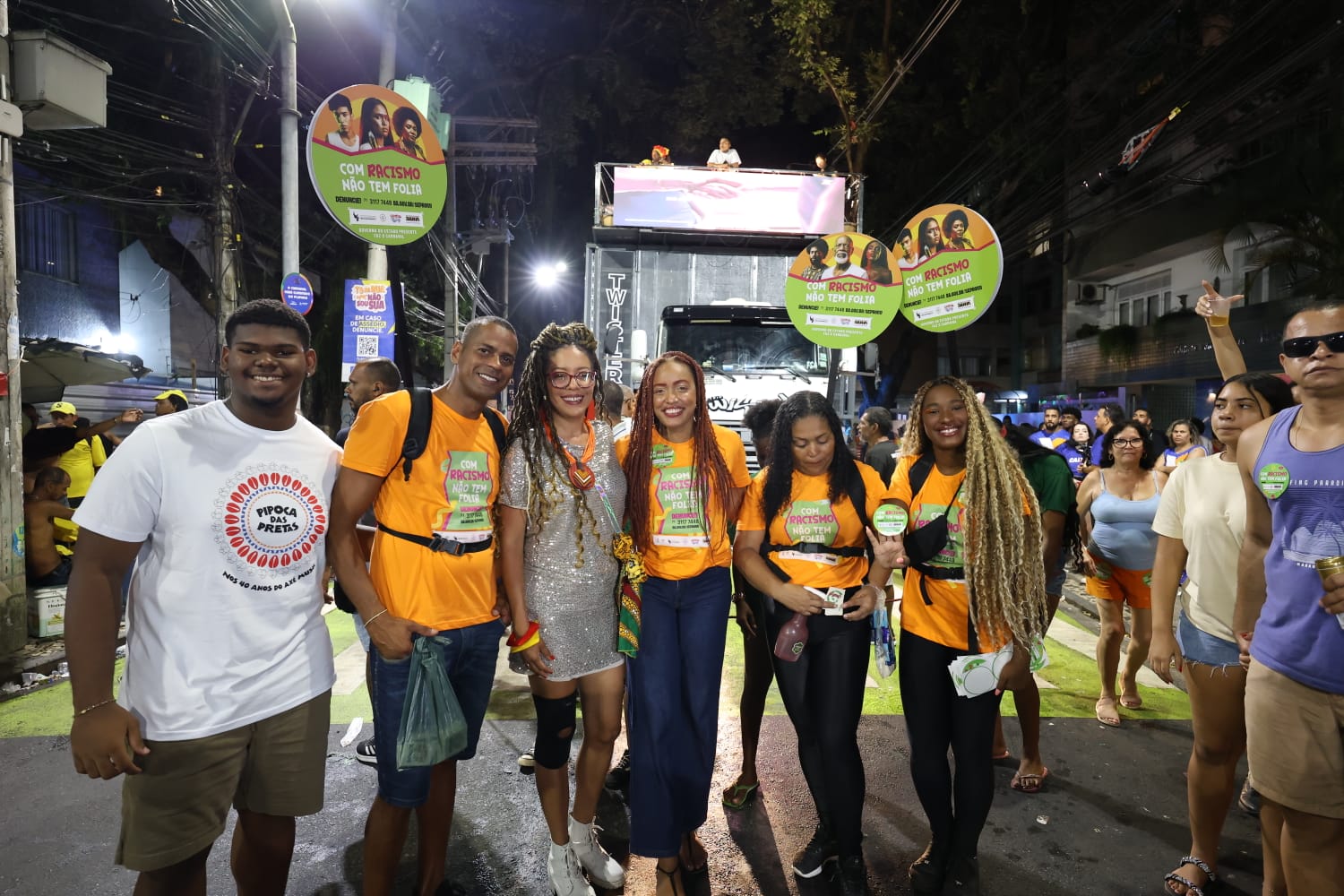 Por uma festa acolhedora e sem violências raciais, os importantes agentes da mensagem de um carnaval sem racismo, divulgaram as consequências legais para os crimes previstos na Lei N° 14.532/2023, assim como acionou a Rede responsável por adotar medidas cabíveis para a responsabilização de agressores(as). Para tal, a Secretaria esteve presente com 6 postos fixos em Salvador: no Plantão Integrados dos Direitos Humanos na Estação da Lapa, nos circuitos Dodô e Osmar, bem como nos Postos Integrados do Governo em ambos os circuitos, além da Unidade Móvel do Centro de Referência Nelson Mandela, no circuito Batatinha.