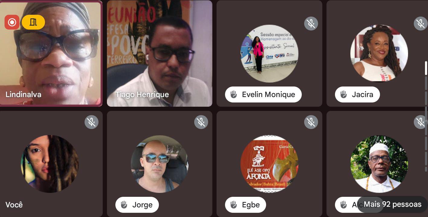 A Conferência Temática dos Povos de Terreiro mobilizou lideranças religiosas, representantes de comunidades tradicionais e militantes da luta racial, nesta terça-feira(29), em formato virtual, na plataforma Google Meet. Etapa integrante da IV Conferência Estadual de Promoção da Igualdade Racial (CONEPIR), prevista para acontecer entre 20 e 22 de agosto, em Salvador, o encontro teve foco na promoção da igualdade, democracia, justiça racial e reparação histórica e promoveu intensos debates a partir das vivências dos povos e comunidades de terreiro.