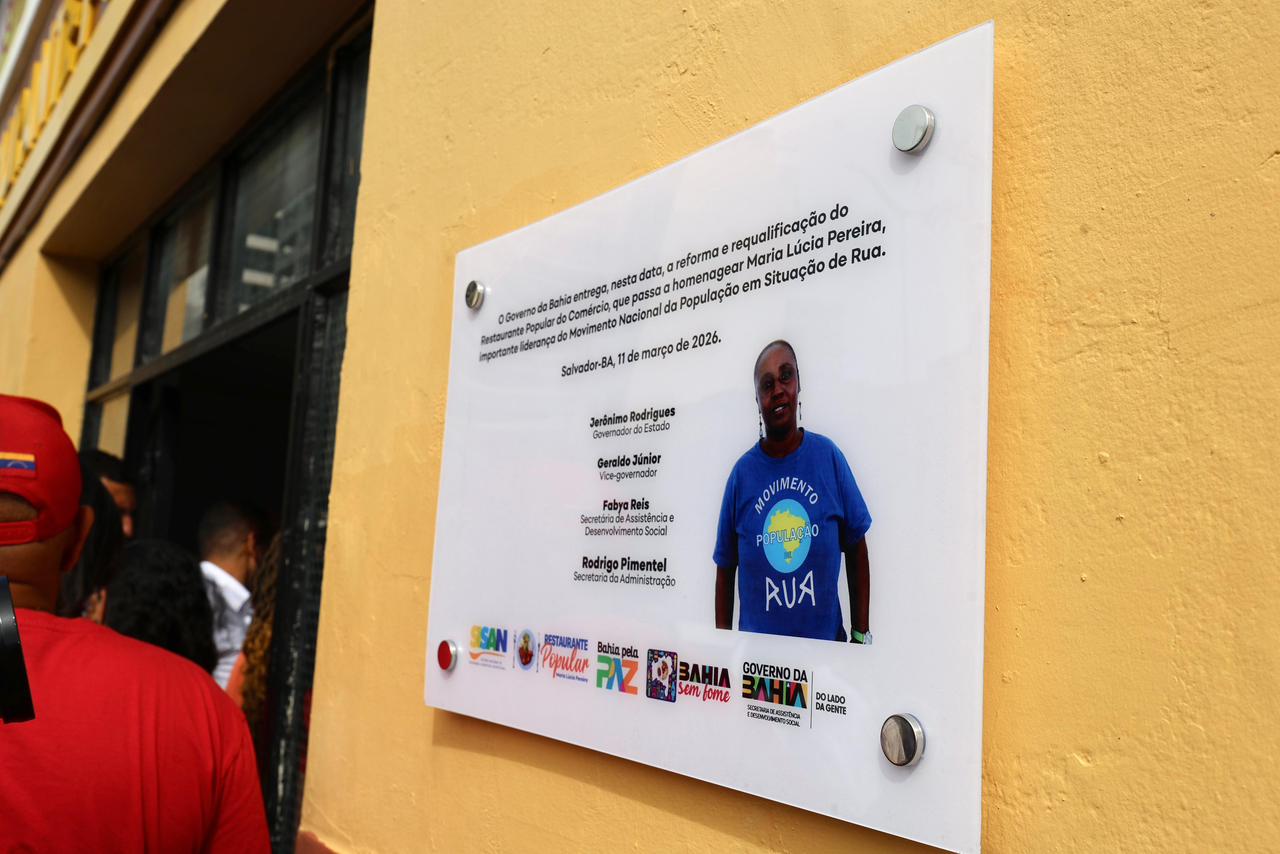 “O Governo do Estado entrega a revitalização do Restaurante Popular do Comércio e, no mês de março, homenageia uma grande mulher, uma ativista da população em situação de rua e usuária histórica deste espaço”. A afirmação da secretária de Assistência e Desenvolvimento Social da Bahia (Seades), Fabya Reis, marcou a inauguração do Restaurante Popular Maria Lúcia Pereira, na manhã desta quarta-feira (11), no Comércio, em Salvador. Requalificado pelo Governo do Estado, por meio da Seades, o equipamento recebeu investimento de R$ 9,2 milhões e a estimativa é de mais de 757 mil refeições gratuitas por ano para a população em situação de vulnerabilidade socioeconômica.