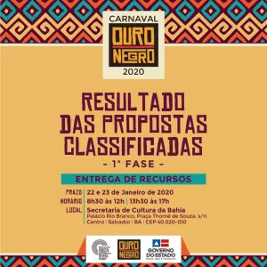 Propostas classificadas em primeira fase do Carnaval Ouro Negro 2020 são divulgadas