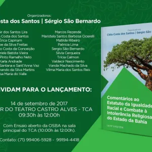 Lançamento do livro “Comentários ao Estatuto da Igualdade Racial e Combate à Intolerância Religiosa do Estado da Bahia”