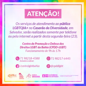 Casarão da Diversidade suspende atendimentos presenciais a partir desta segunda-feira (23)