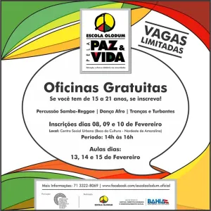 Inscrições para Escola Olodum no Nordeste de Amaralina