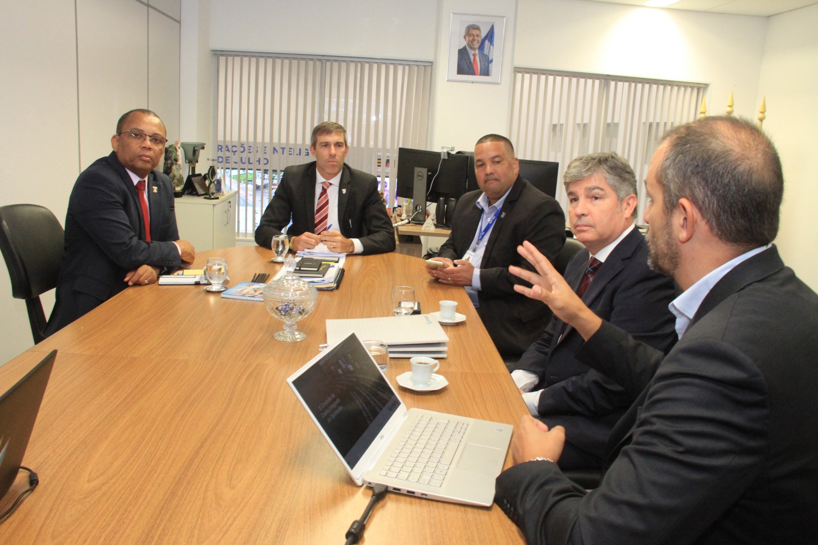 O encontro, que aconteceu no Centro de Operações e Inteligência (COI), no Centro Administrativo da Bahia (CAB), contou com as participações dos superintendentes de Gestão Tecnológica e Organizacional (SGTO), coronel Marcos Oliveira, e de Telecomunicações (Stelecom), major Moisés Travessa, e apresentou o trabalho da empresa para o chefe da pasta.