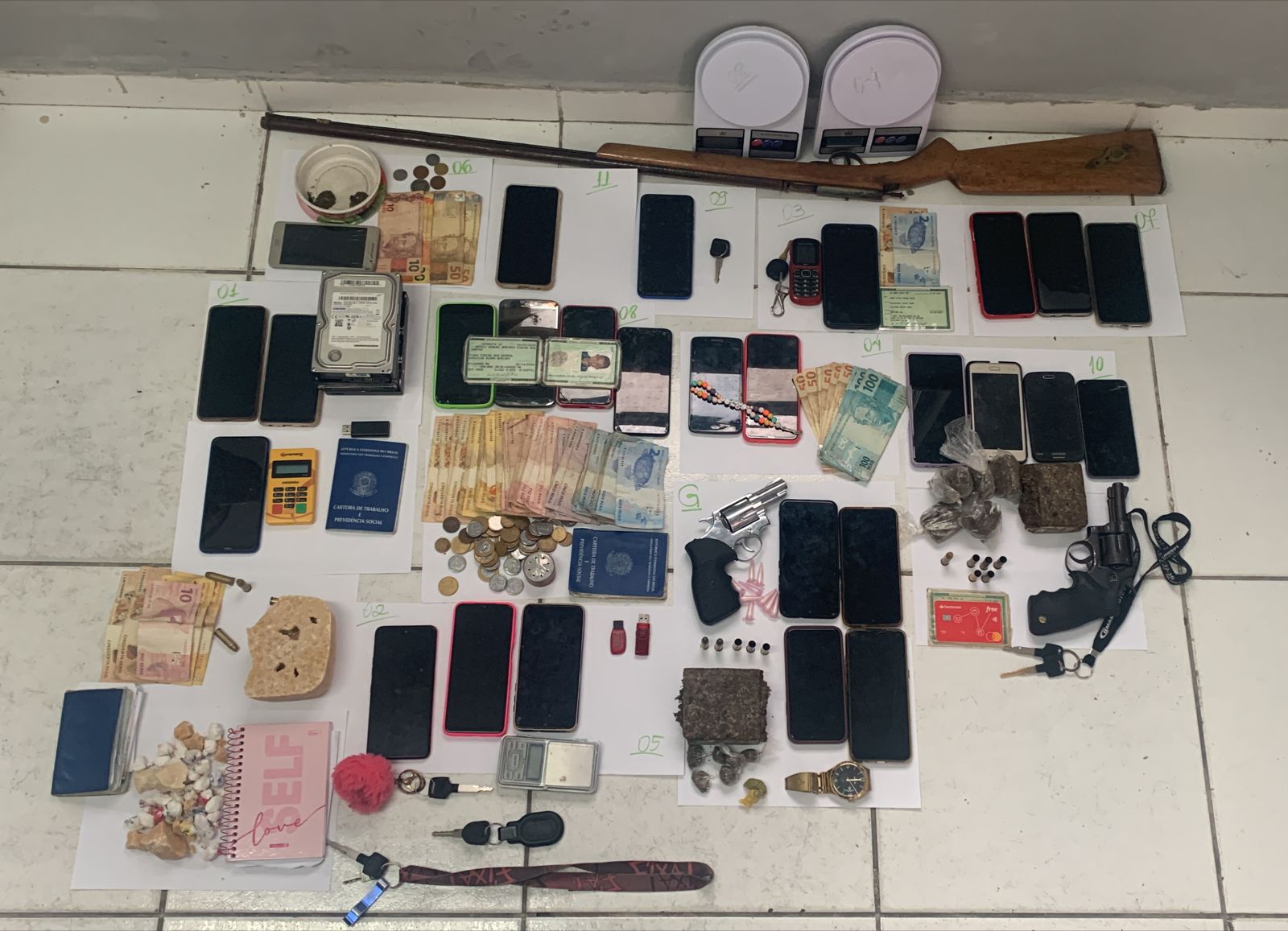 Uma operação deflagrada pela Delegacia Territorial de Milagres, com o apoio da Polícia Militar, para cumprir mandados de busca e apreensão resultou, na quarta-feira (3), na prisão de uma mulher e na apreensão de 41 pinos de cocaína, seis tabletes maconha, 600 gramas de crack, 25 celulares, três armas de fogo, munições, seis motocicletas, três balanças e a quantia de R$ 1,5 mil.