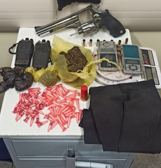 Além da arma, com o criminoso foram encontrados porções de crack e cocaína, dois rádios comunicadores e três balanças. De acordo com o oficial, o material foi apresentado na Delegacia Territorial da cidade.