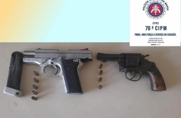 Uma pistola calibre 380 e um revólver calibre 38 foram apreendidos na terça-feira (9), por equipes da 70ª Companhia Independente da Polícia Militar (CIPM/ Ilhéus). Dois traficantes que atuavam como segurança no comércio ilegal foram localizados.
