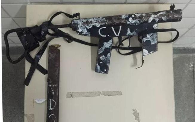 Com o indivíduo foram apreendidos uma submetralhadora calibre 9mm, que ostentava a sigla de uma organização criminosa, carregador e munições.