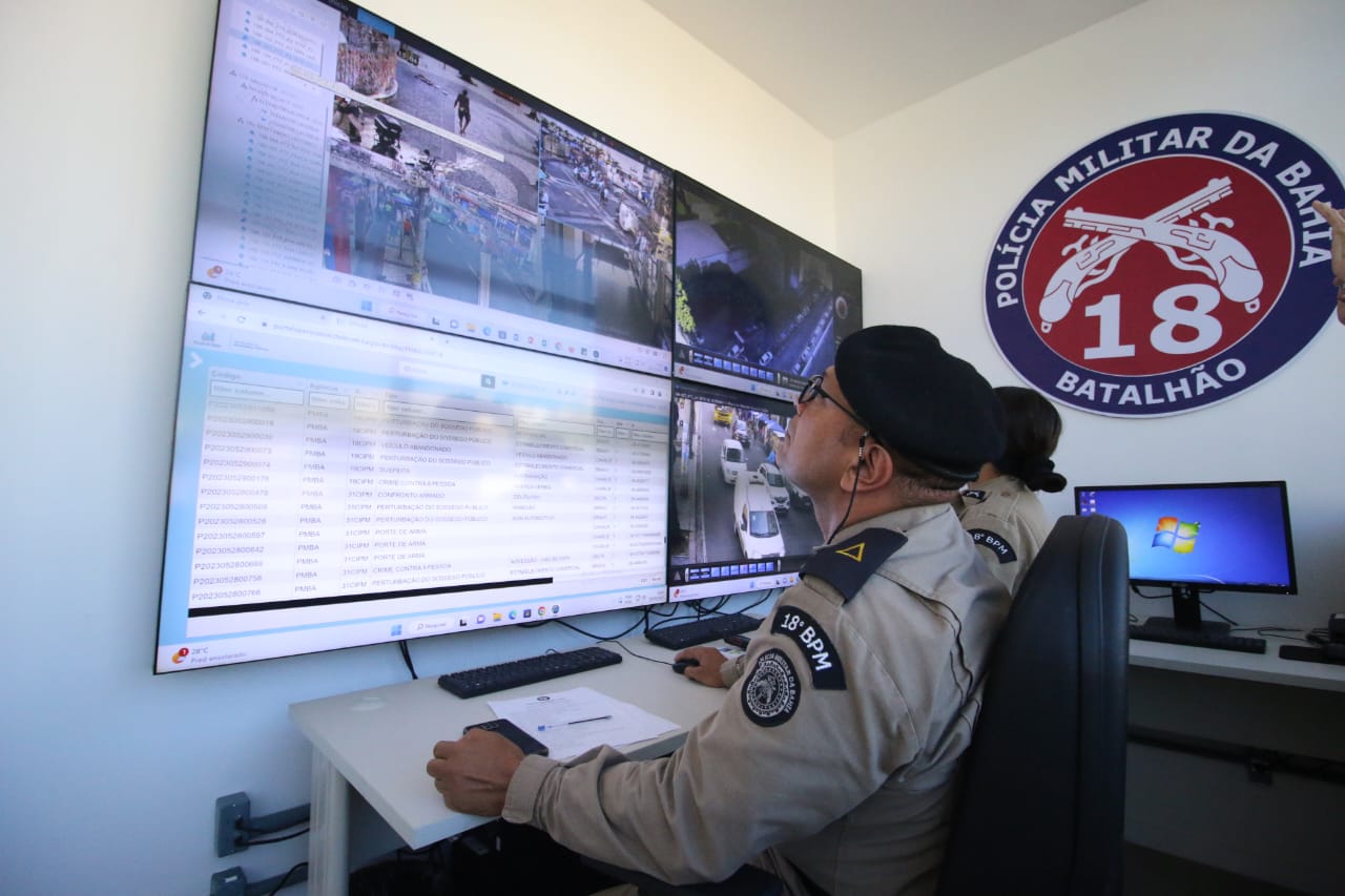 Câmeras da Secretaria da Segurança Pública são utilizadas por equipes das polícias Militar e Civil em busca de criminosos que agem no Centro de Salvador. Informações iniciais indicam que adolescentes roubaram um jornalista e turistas no sábado (8).