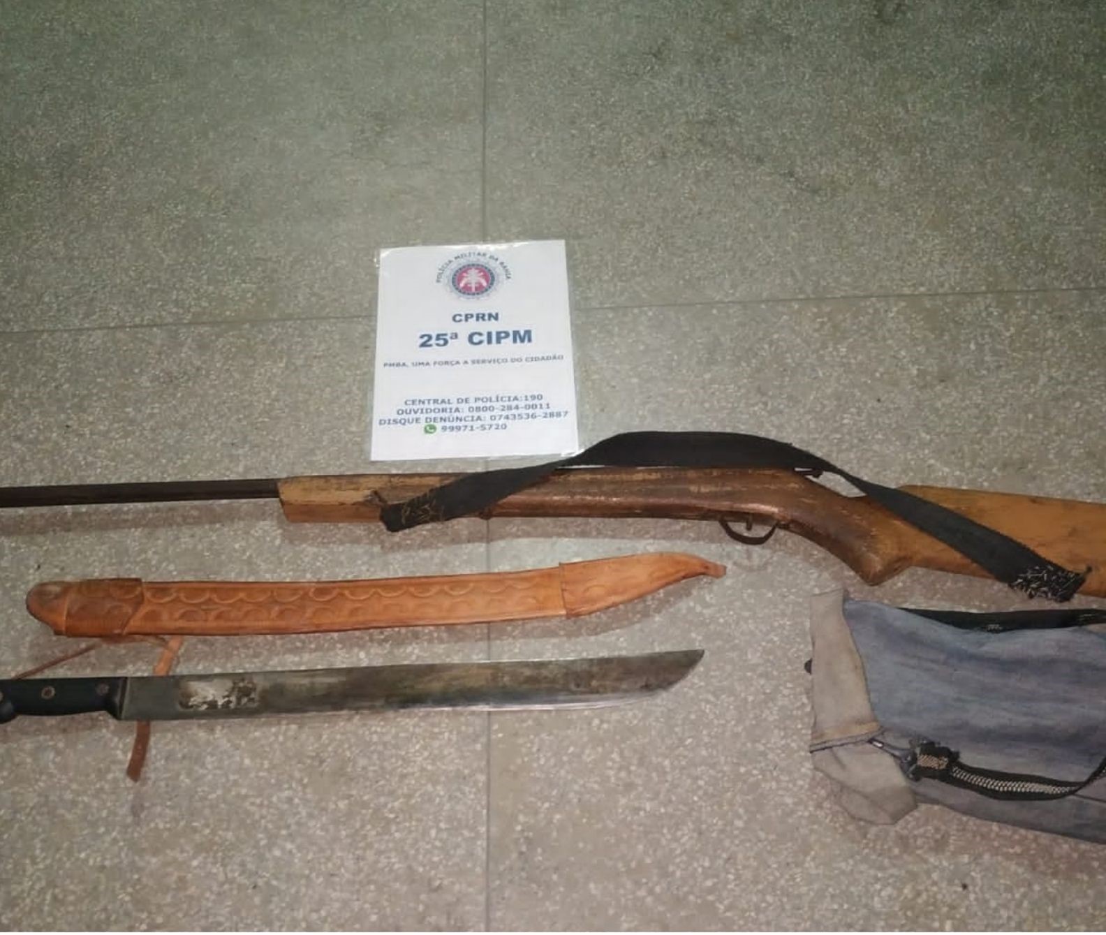 Na zona rural do município de Casa Nova, no distrito de Sítio Xique-Xique, um homem foi preso em flagrante com três espingardas e seis munições. Segundo o comandante, major Lizandro Santos, o criminoso ameaçava os moradores.