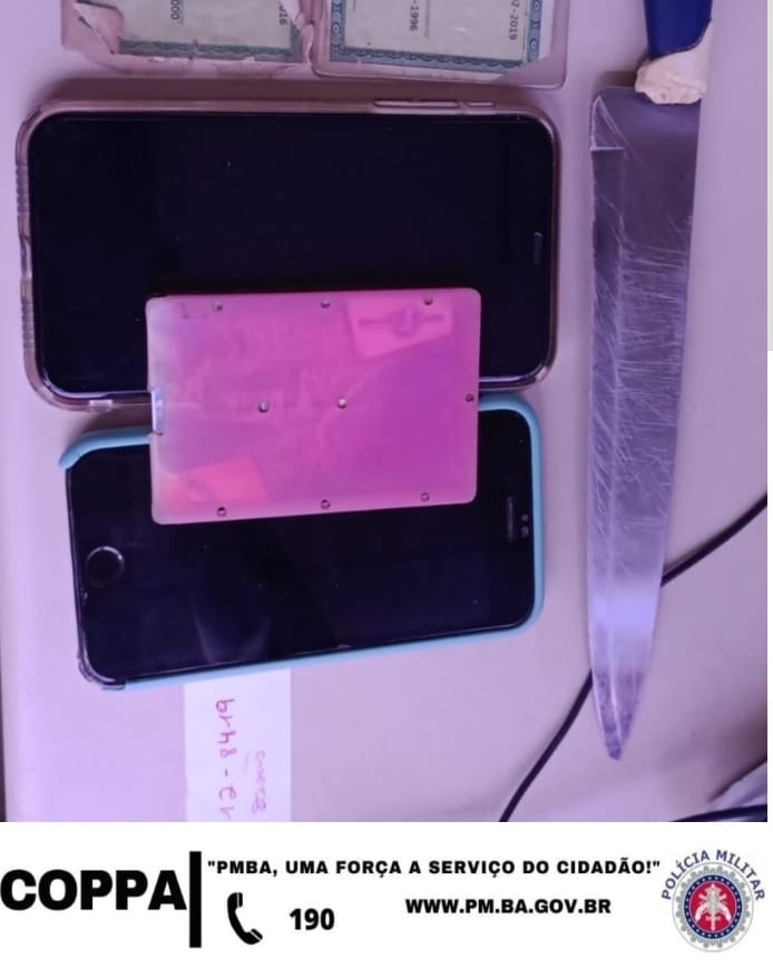 Em Capim Grosso, guarnições da 91ª CIPM receberam informações de um assalto a um veículo que seguia para o município de Jacobina. O transporte foi interceptado, na localidade da Av. ACM, quando os militarem identificaram dois criminosos com uma peixeira.