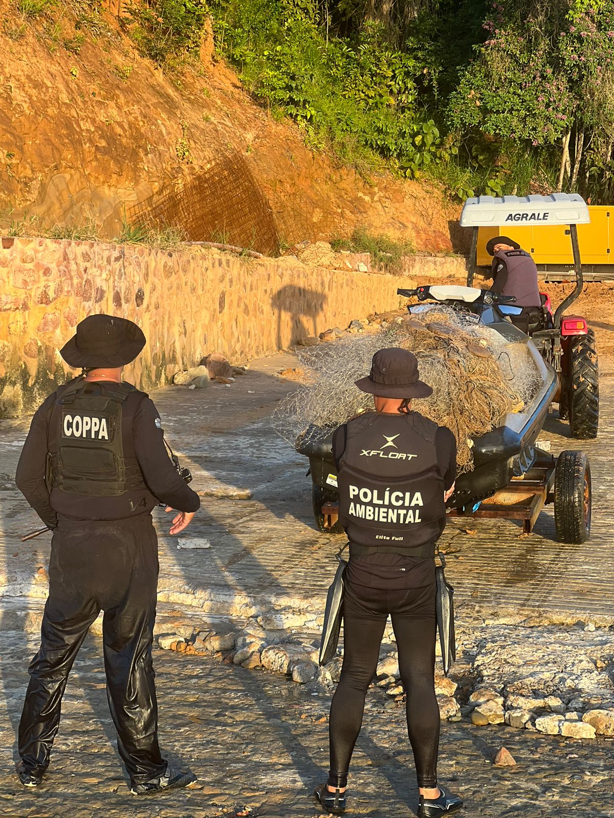 Segundo a comandante da unidade, major Érica Patrícia, uma equipe foi deslocada para a região de Saubara, onde flagrou uma rede de espera instalada no mar. "Esse tipo de equipamento não é permitido, pois provoca a morte de outros animais, como a tartaruga", explicou a oficial.