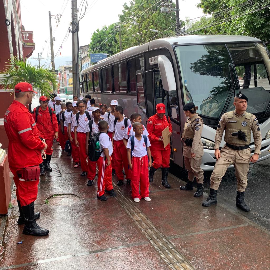 Os integrantes da Base Comunitária de Segurança do Calabar (BCS) acompanharam 32 crianças e adolescentes do projeto “Bombeiros Mirins”, para uma visitação ao 1º Batalhão da Polícia Militar, localizado no bairro da Barroquinha, em Salvador. A visita ocorreu na manhã desta sexta-feira (28).