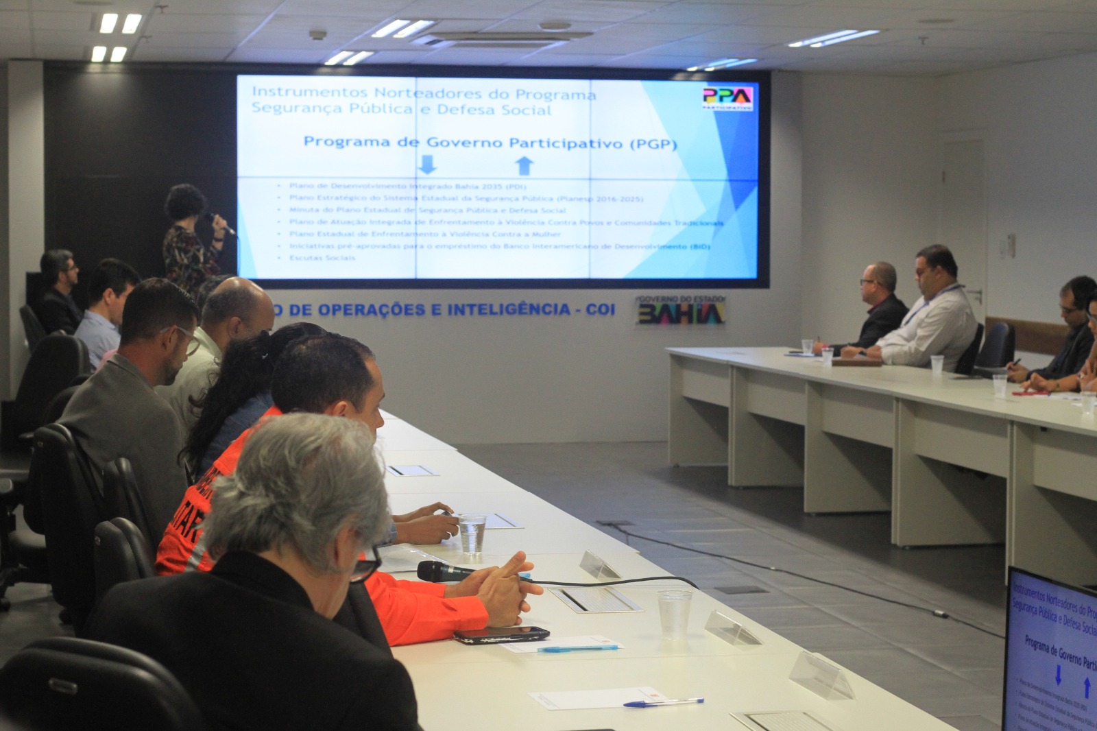 A validação dos compromissos e iniciativas do programa ‘Segurança Pública E Defesa Social’, do Plano Plurianual (PPA) Participativo de 2024-2027, foram discutidas por integrantes das Secretaria da Segurança Pública, durante reunião nesta sexta-feira (28), no Centro de Operações e Inteligência (COI).