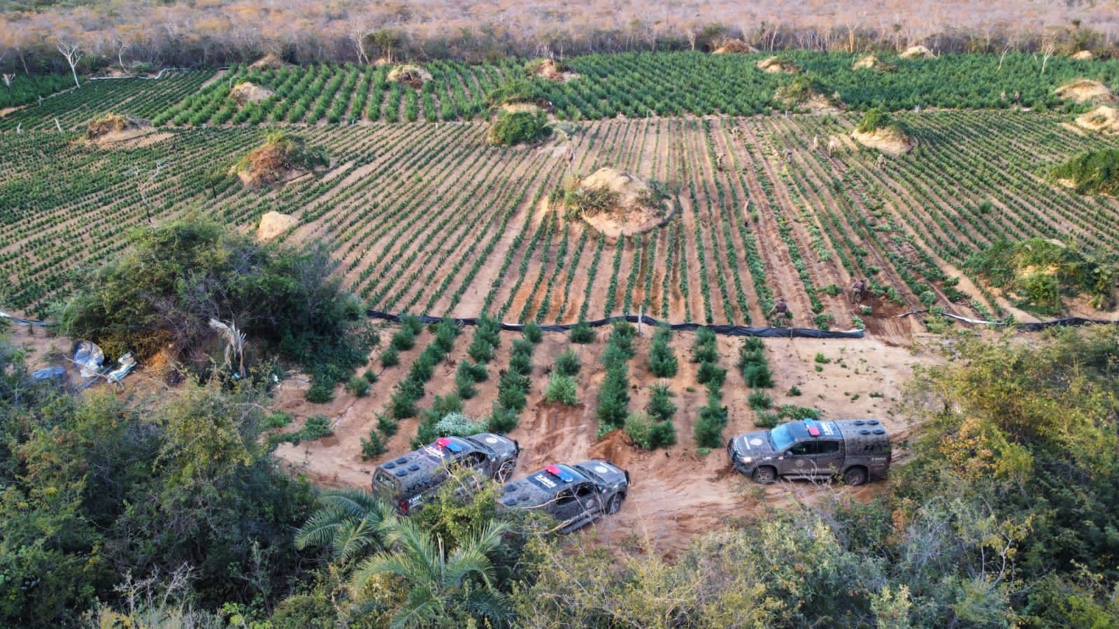 A Companhia Independente de Policiamento Especializado (Cipe) Chapada erradicou no sábado (29), cerca de 180 mil pés de maconha, no povoado de Sumidouro, município de Brotas de Macaúbas. Drones foram utilizados para encontrar a plantação.