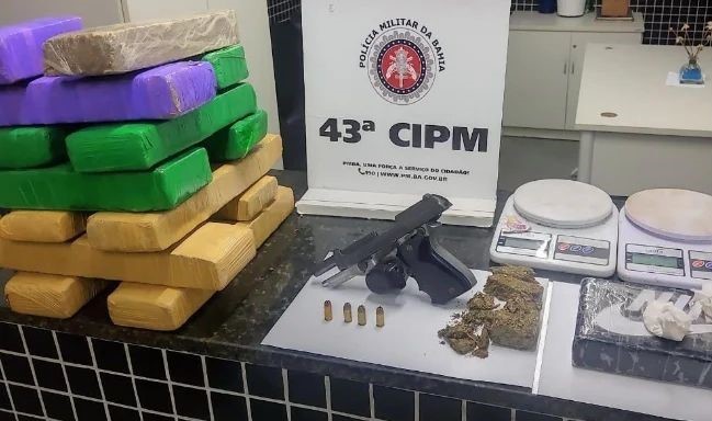 Pistola e 13 kg de entorpecentes são localizados na cidade de Itamaraju