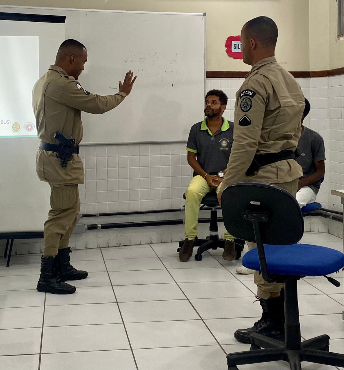 O efetivo aprendeu os sinais das letras e como formar frases com os sinais. As capacitações foram ministradas pela professora Emanuelle Dantas, mestranda em estudos linguísticos pela Universidade Estadual de Feira de Santana (UEFS) como contou o capitão Thauan Morais, comandante da BCS.