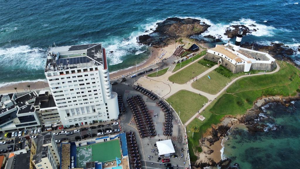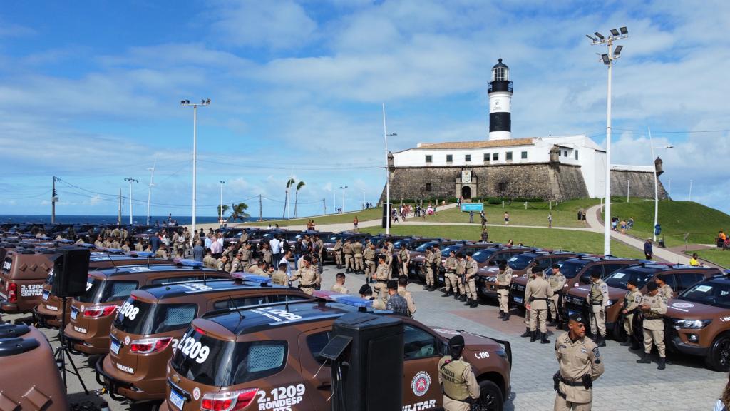 Oitenta e quatro novas viaturas - sendo 27 semiblindadas - foram entregues para a Polícia Militar pelo governador Jerônimo Rodrigues, e pelo secretário da Segurança Pública, Marcelo Werner, durante cerimônia no Farol da Barra, na manhã desta quarta-feira (6), em Salvador.