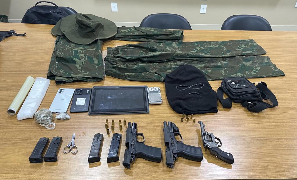 Sete armas de fogo, além de outros materiais ilícitos foram apreendidos com os suspeitos. Dos oito alvos, sete foram localizados após confrontos com a polícia e um foi preso. Equipes do 8° Batalhão da Polícia Militar (BPM), Rondesp Extremo Sul, da Companhia Independente de Policia de Proteção Ambiental (Cippa) e do Grupamento Aéreo (Graer) da PM apoiam as diligências.