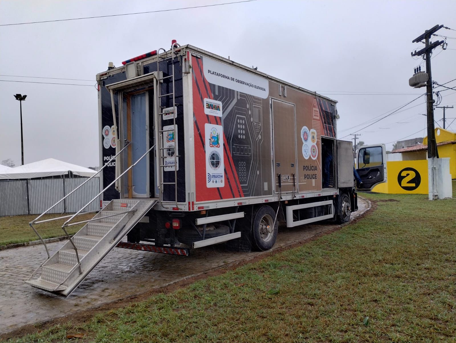 Nesta sexta-feira (8) e sábado (9), uma Plataforma de Observação Elevada (POE) ficará estacionada em um ponto estratégico da festa. Nela, será realizado o monitoramento do público público, para ajudar na captura de criminosos com ordens judiciais expedidas.