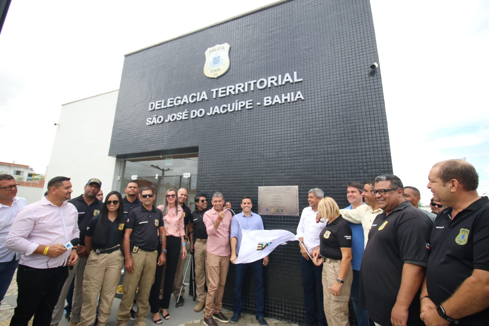 As novas sedes da Delegacia Territorial (DT) da Polícia Civil e do Pelotão da Polícia Militar do município de São José do Jacuípe foram inauguradas na manhã deste domingo (10). A solenidade contou com as presenças do governador Jerônimo Rodrigues, do subsecretário da Segurança Pública, Marcel de Oliveira, do comandante-geral da PM, coronel Paulo Coutinho, e da diretora do Departamento de Polícia do Interior (Depin), delegada Rogéria Araújo.