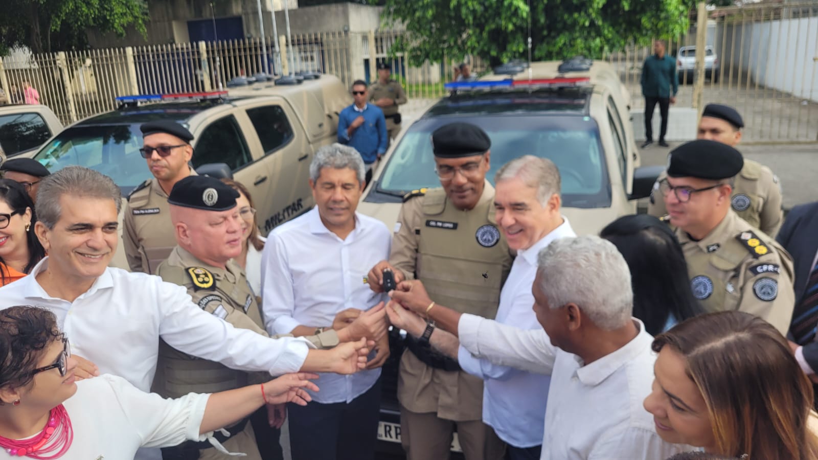 Com a presença do governador do estado Jerônimo Rodrigues e do comandante-geral da PM, coronel Paulo Coutinho, as chaves das viaturas foram entregues aos comandantes das unidades.