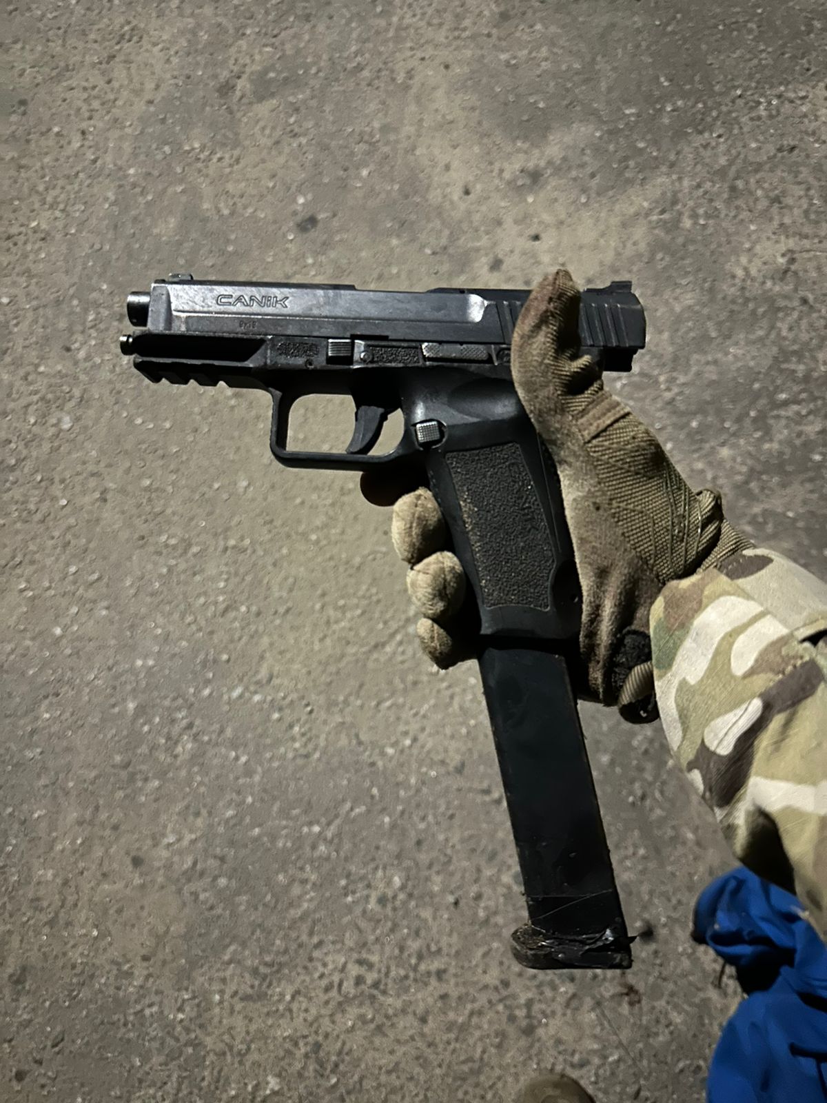 Na Palestina, policiais da Coordenação de Operações e Recursos Especiais (CORE) da PC e do Comando de Operações Táticas (COT) da PF localizaram outro traficante. Uma pistola calibre 9mm, com carregador alongado e munições foram apreendidos com o indivíduo. Ele atirou contra as equipes, terminou atingido e não resistiu.