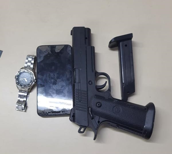 Com ele, foram encontrados uma pistola calibre .380 com um carregador e dez munições, 86 pinos com cocaína, 80 porções de maconha e 30 pedras de crack.